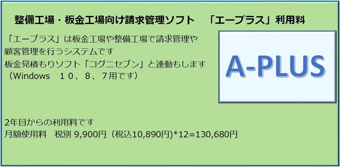 エープラス」は板金工場や整備工場で請求管理や顧客管理を行うシステムです